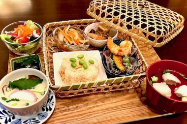 日頃の感謝を込めて、限定10食の特別メニュー【竹かごボタン膳】ご用意いたしました。変わりご飯or自家製パン・汁物・天ぷら・茶碗蒸し・煮もの・和え物・胡麻団子・サラダ・副菜付き。仕入れ状況により日々内容は異なります。