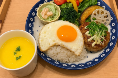仕入れによって、毎日違う組み合わせの献立を提供します。お任せなので、主菜・副菜に旬の食材を取り入れつつ、栄養バランスを考えて野菜が豊富に摂れる献立を心がけた、お楽しみメニューとなっております。日替わりスープ付き。お品書きで献立をお知らせいたしますので、詳しくはスタッフにお尋ねください。*数量限定の為、食数に限りがありますので、売り切れの際はご容赦願います。✩☚掲載写真は一例です。日替わりメニュー!