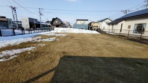 気温の上昇によりドッグラン内の雪解けが進み、芝生の状態が悪くなりました。